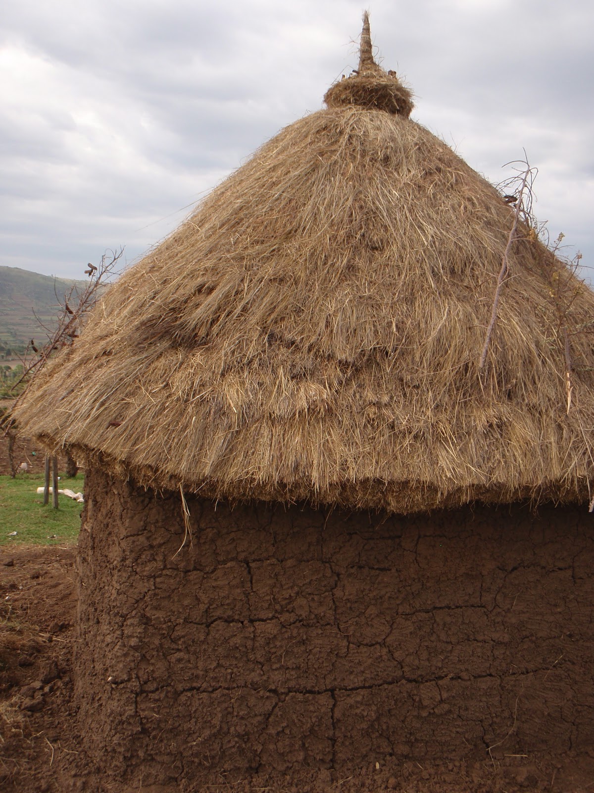 | These ladies were helping behind-the-scenes with the wedding meal preparations. The house they are standing in front of is typical of this area- mud and stick walls with a thatched roof. |