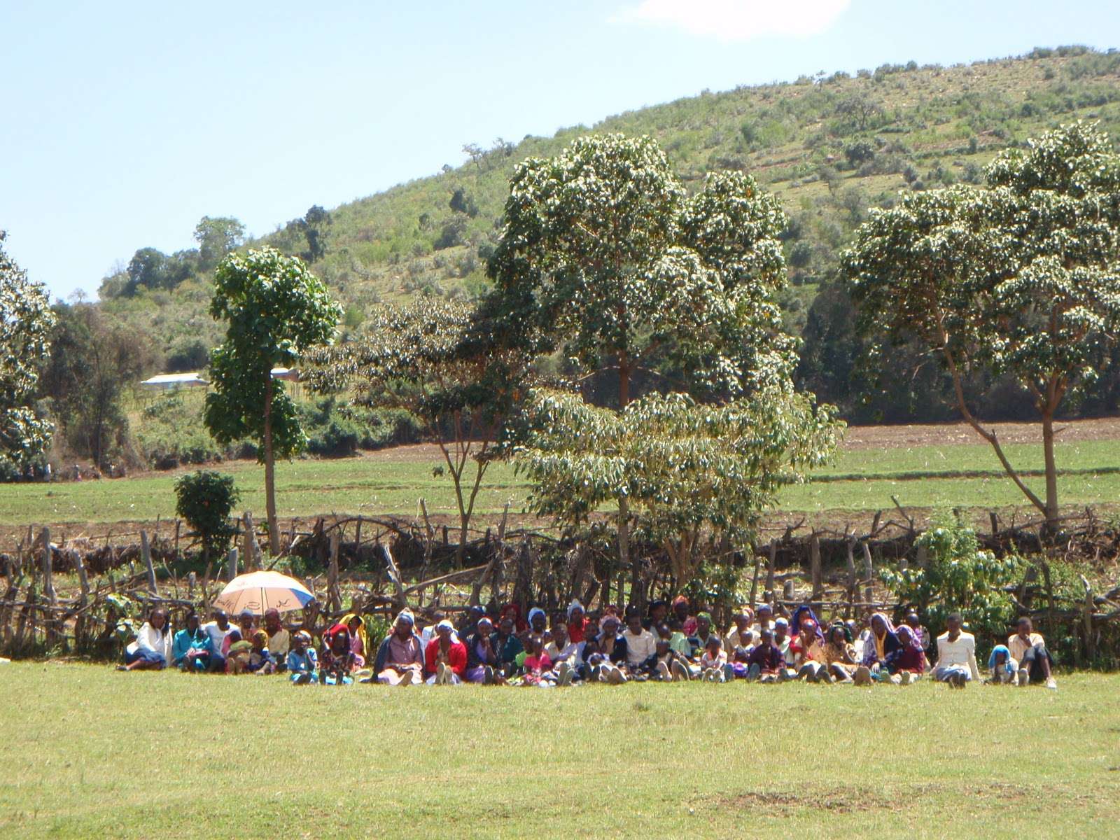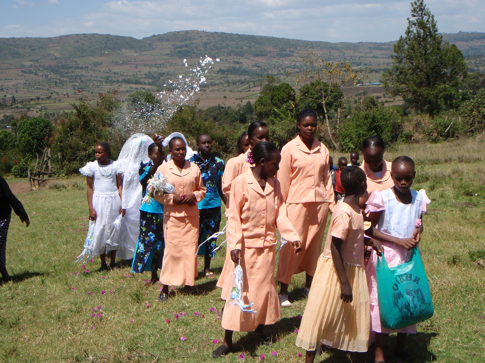 It took about 30-40 minutes for the bridal party to crest the hill, cross the field, and enter the covered area, while the pastors continued to lead the guests in (the same) song. While this took place, the assembled guests alternated between watching the bridal party and watching the muzungu.