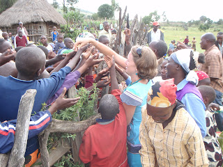 It took place in a very rural community, perhaps 10 kilometers off the main road, and I don't imagine they get many muzungu visitors up there, judging from the amount of attention we received. Geemi was clearly really proud to be accompanied by two glowing white wazungu and we were stared at by approximately 500 people for the next 4-5 hours.