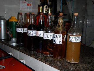 Caipirinhas! (Cai-purr-een-yah) The picture above isn't a caipirinha, but rather, homemade cachaca, which is the sugar cane alcohol that is part of a caipirinha. Several bars sold cachaca that was infused with local flavors: vanilla, corn, ginger, cloves, and you could buy a 'dose' (shot) of the alcohol to sip at. I really, really loved the caipirinhas, which were available at every restaurant for affordable prices and were sweet (sugar) and tangy (lime) and simple and refreshing. I have a bottle of plain cachaca and plan to make homemade caipirinhas as the weather warms up, and I brought back some homemade cachaca from "O Cravinho" Bar in Salvador, Brazil that's infused with clove, lime, honey, and ginger -Yum!!