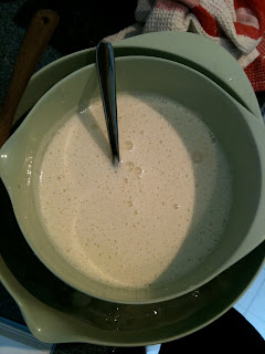 In the meantime, whip 4 egg yolks and 1/4 cup sugar until lightly frothy. Use a bowl that is much larger than necessary. (You'll see why.)