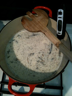 We started the process in the morning, since gelato requires at least 8 hours of chilling. It was a pretty complicated process- maybe by my third or fourth time it would seem smoother. I'm a gelato-newbie, and like I said: recipes that call for precise temperatures make me nervous.