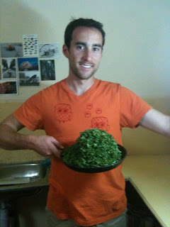 I've mentioned my deep passion for sukuma wiki (collard greens) on this blog before, and here it is. We like to buy it from our favorite Kenyan mama, who pre-shreds it and bags it. It's super convenient: empty the bag onto a frying pan with a kersplash of olive oil, a couple pressed garlic cloves, and some squeezes of lime juice. We can easily down this much sukuma in one meal (it shrinks down a lot.)