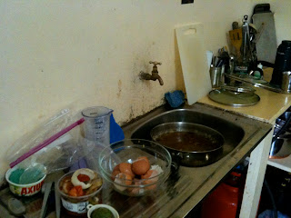 I know, not good enough. Well, imagine, if you will... cumin garlic breakfast potatoes, chipotle lime beans (I used some of our precious stash of black beans from the States, as for some reason you can buy 30 different types of beans here, none of them black beans), seasoned scrambled eggs, guacamole (delish! Avocado, tomato, garlic, a hint of red onion, cilantro, and lime), sauteed veggies (zucchini and pumpkin), and banana pecan muffins. I made ricotta cheese last night and topped the beans with homemade cheese.