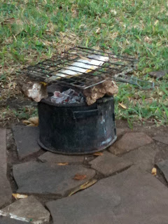 The imprisoned fish is then placed on a charcoal BBQ stove thing called a "Jiko". Most families cook over this for every meal (they balance a pot on the top). There are gigantic bags of homemade charcoal sold on the side of every road. It's unfortunate that there aren't many cooking options, because the homemade charcoal is made from local trees- and has contributed to huge problems with deforestation.