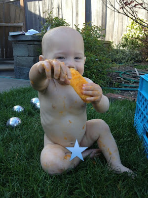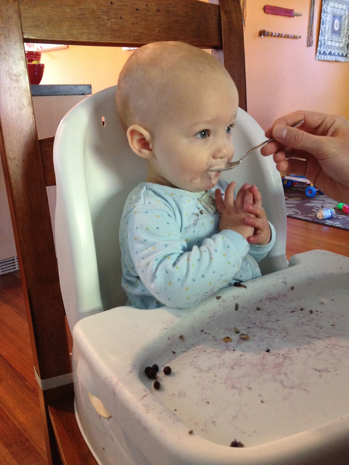 (The purple detritus is remnants of a perfectly good blueberry pancake that Luke used for a gravity testing experiment.)