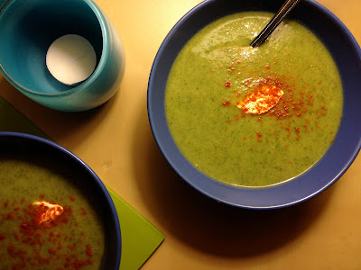 I peeled and sliced the sunchokes and added them to chicken broth along with sauteed leeks and chunks of potato. After simmering for about 30 minutes, I blended everything with an immersion blender. I also added a bag of frozen spinach to make the soup pretty and green (and healthier, I suppose). I finished the soup with a couple cups of whole milk, a dollop of sour cream and some heavy dashes of cayenne pepper.