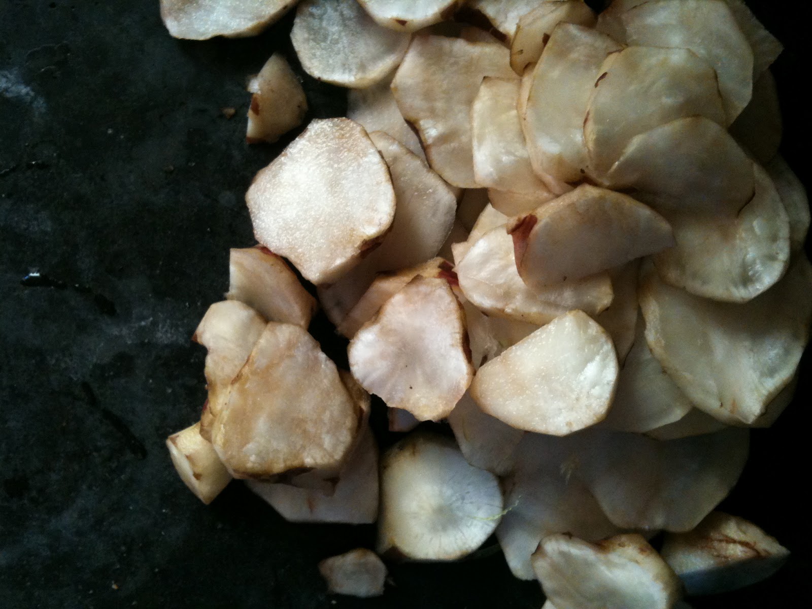 Fascinatingly enough, in my research (on good ol' Wikipedia) I discovered that the sunchoke gained notoriety in the 1980's when they became part of an agricultural pyramid scheme. Apparently farmers in the midwest were coerced into believing that sunchokes were the next big thing in the tuber world, and many started planting and selling the seeds to those lower on the pyramid. This didn't work out well- obviously- since sunchokes haven't really replaced potatoes or yams on the American table.